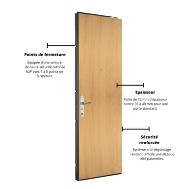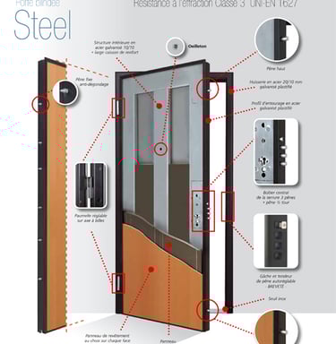 Blindage intérieur, serrures multipoints et accessoires anti-crochetage.